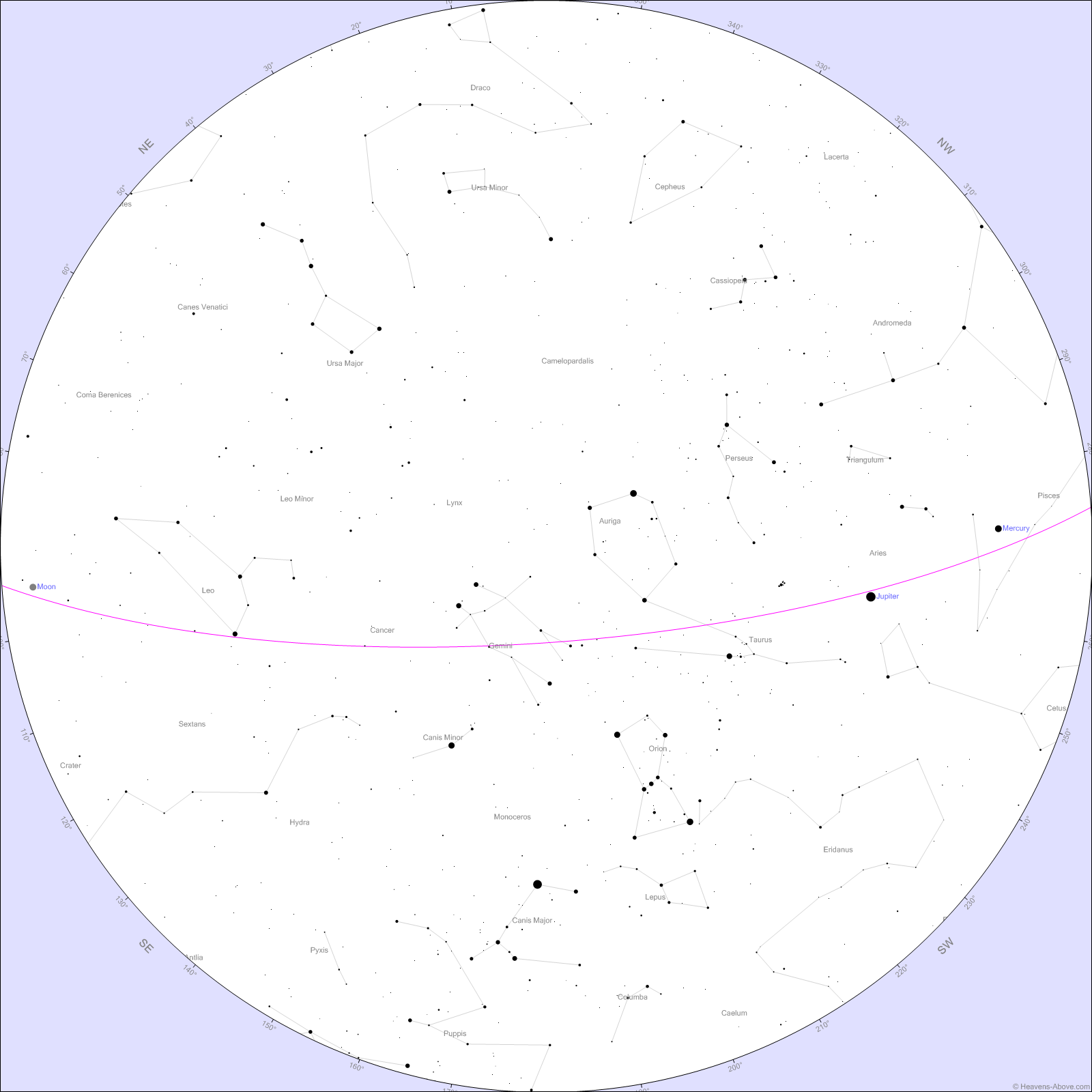 Now, let’s talk constellations and deep sky objects. This month, look overhead for Gemini the Twins, featuring the bright stars Castor and Pollux. Under dark skies, you might also spot the open star cluster M35, located near the twins’ feet.