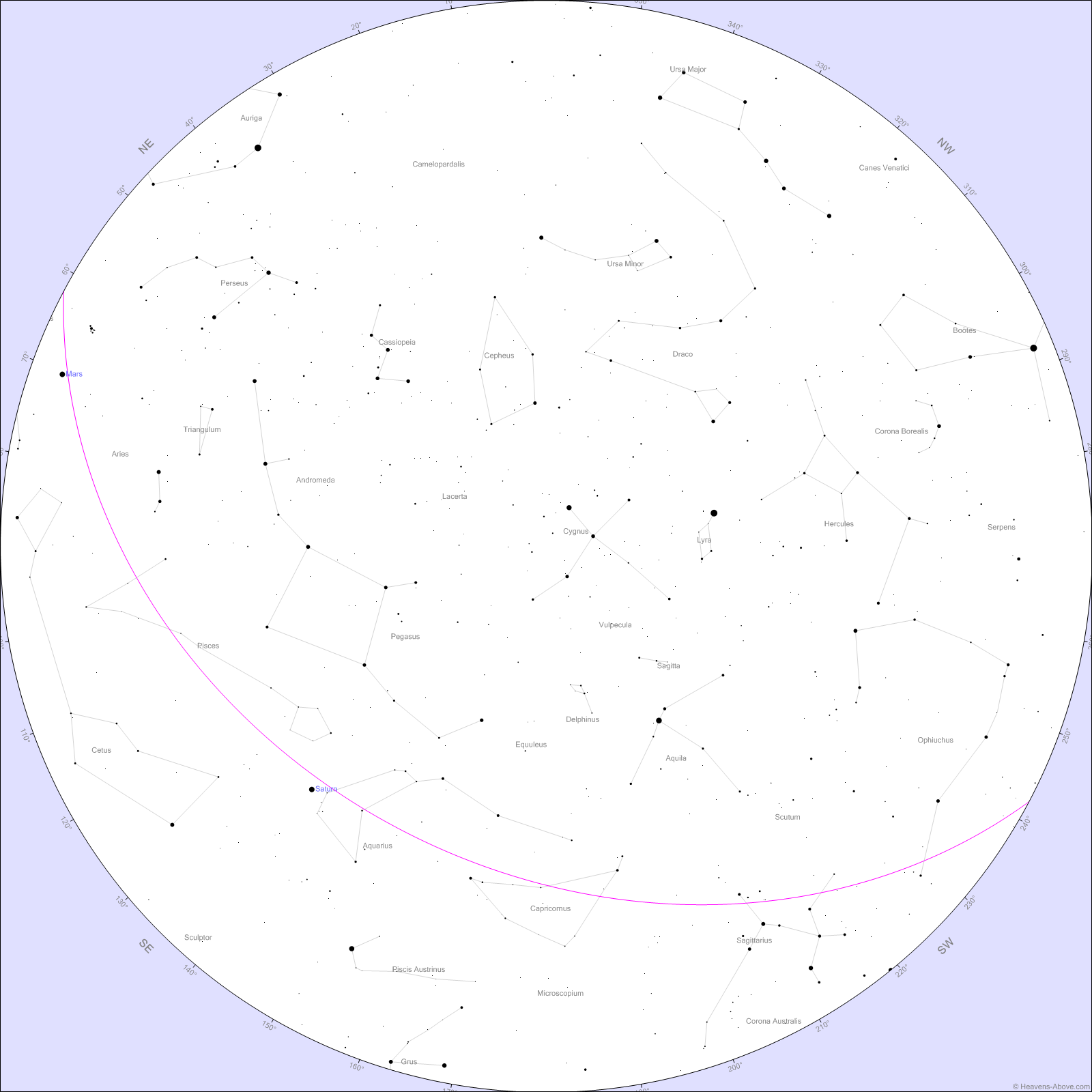 This week, Saturn is still at the kneecap of Aquarius. You’ll be able to spot it rising just before midnight at about the same brightness as Mars. Saturn will end up high in the sky by the pre-dawn hours. Neptune is also in the vicinity, about 15 degrees to the left of Saturn, hanging out in Pisces. As always, you’ll need a telescope to catch it.