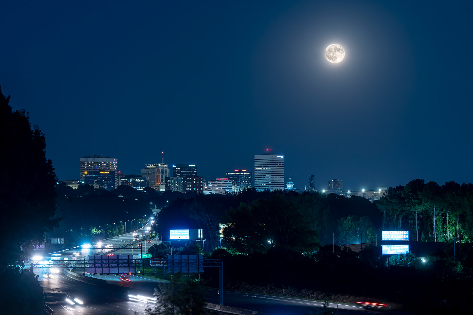 Hopefully you had clear skies and were able to experience last week’s full moon. I decided to go out and try and take a photo of it ascending over the skyline of my home town. I wasn’t entirely successful in that endeavor because the moon was so bright that it made obtaining a good exposure tricky. Normally I like to have some light in the sky for a shot like this to reduce the contrast between the brightness of the Moon and the sky’s darkness.