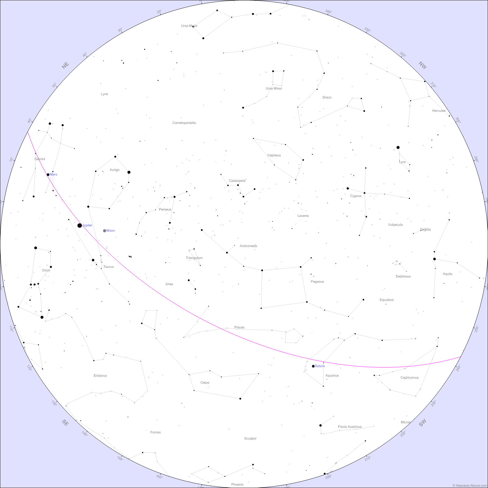 Saturn will be visible all night long during this period. It’s been at opposition, meaning it’s bright and easy to spot. Look for it in the southeastern sky after sunset, where it shines as a yellowish dot in the constellation Aquarius. If you have a telescope, you’ll get great views of Saturn’s rings, which are still in that unique edge-on orientation to Earth.
