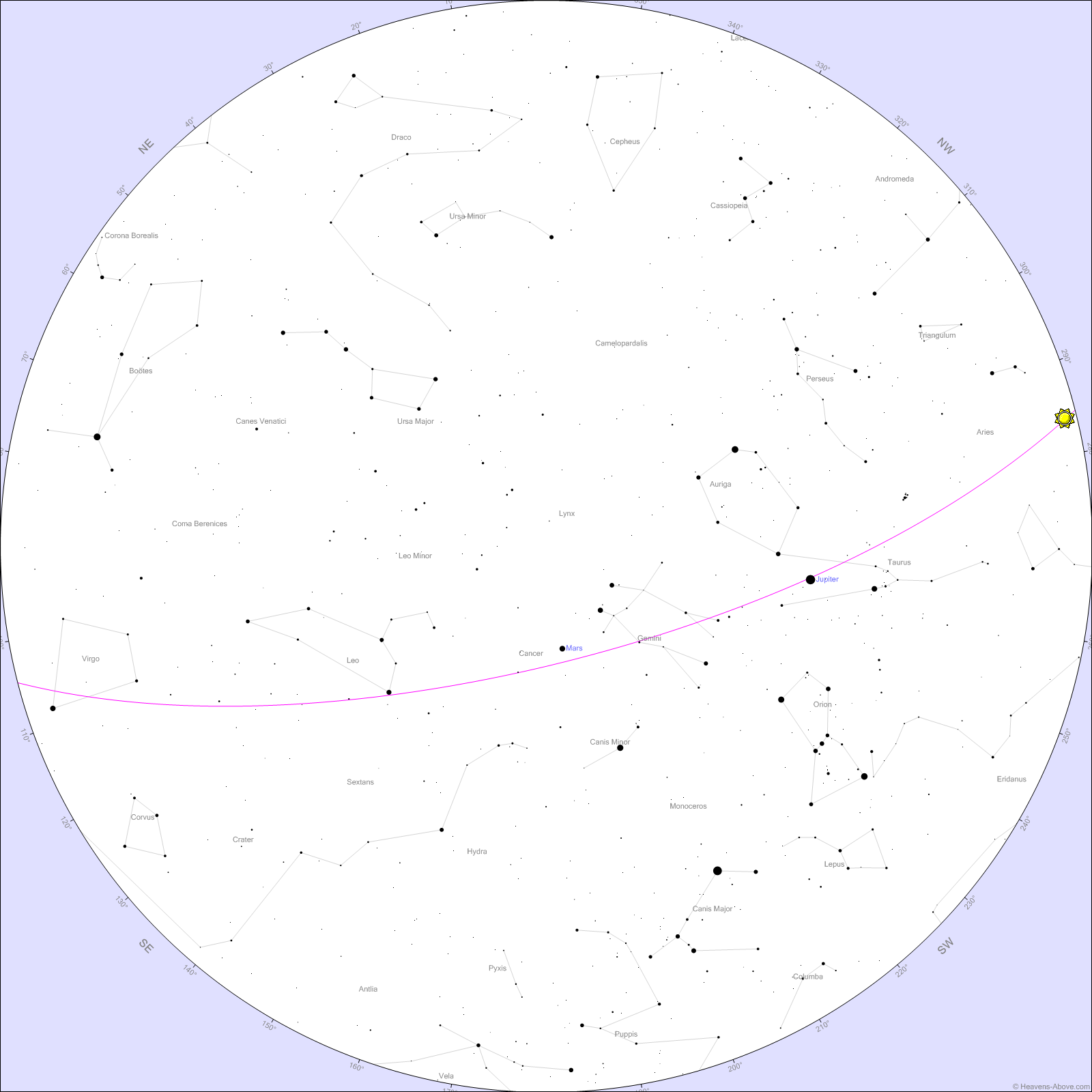 In the evening sky, Jupiter remains prominent in the west, gradually setting earlier each night. Mars trails behind, still hanging out in Gemini. Look for its reddish glow near the twin stars of Castor and Pollux.