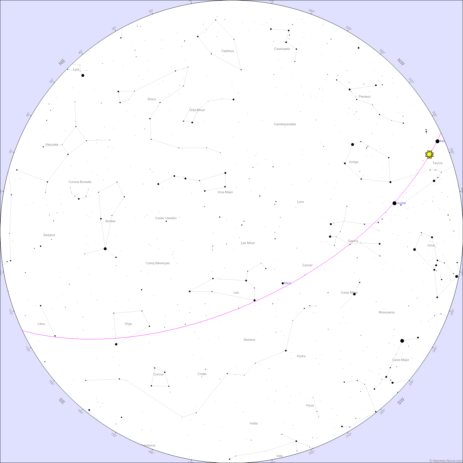 In the evening sky, you can still catch Jupiter just after sunset in the northwest. It’s bright, but slipping closer to the horizon each night as it moves toward conjunction with the Sun. If you want a look, get out early—around twilight—before it sets.