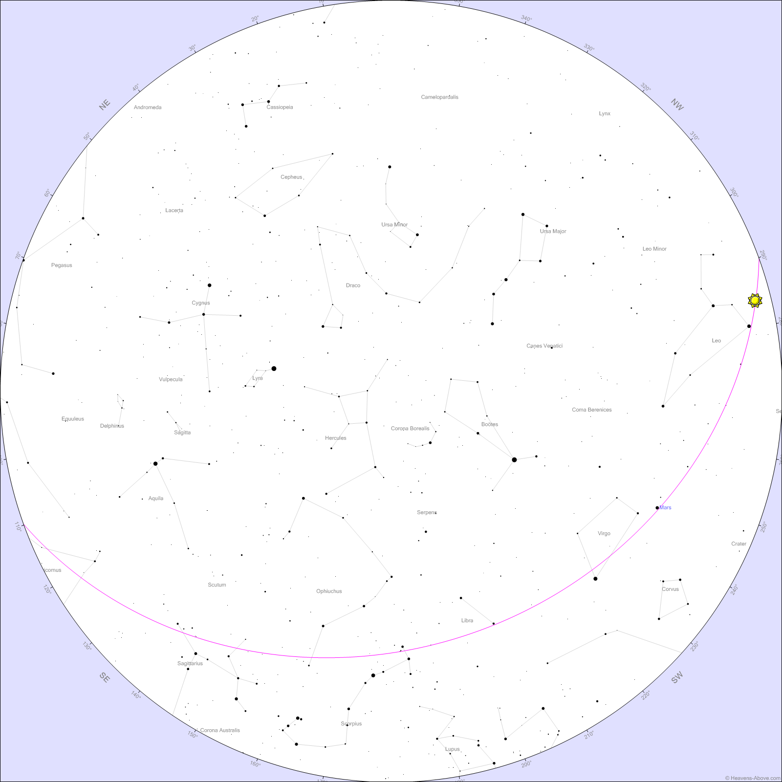 Evening planets are quieter but worth a look. Mars clings to the low western horizon right after sunset. It is faint, small, and sets quickly, so you will need an unobstructed view and a bit of luck with atmospheric clarity.