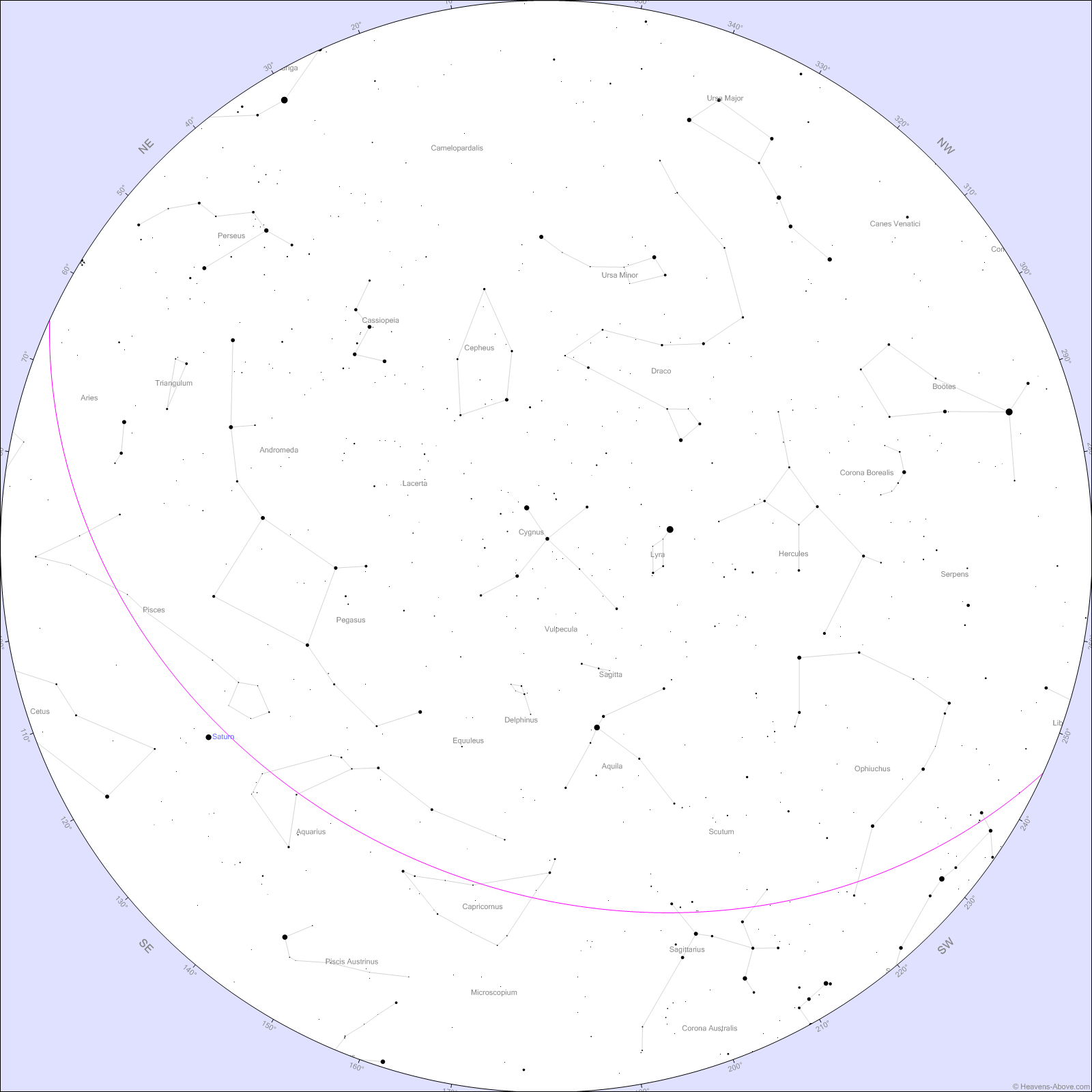 Down south, near Saturn, swing your scope toward M2 in Aquarius — a fine globular cluster — and, if you have a nebula filter, the Helix Nebula, a ghostly ring of gas that lives up to its nickname, the Eye of God.