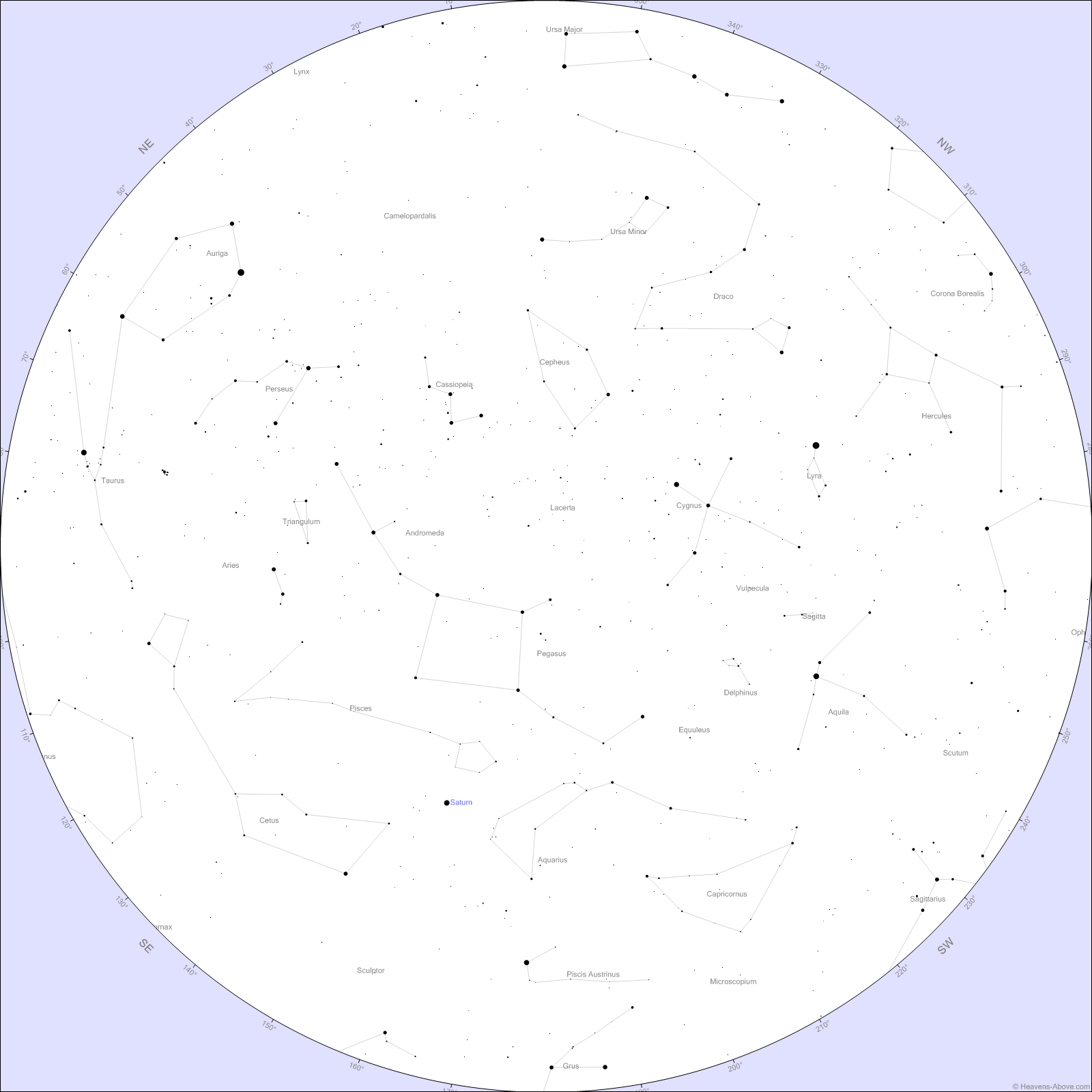 Saturn still rules the early evening sky over in the southeast. The rings are almost edge-on now, so in a telescope they’re a fine, thin line.