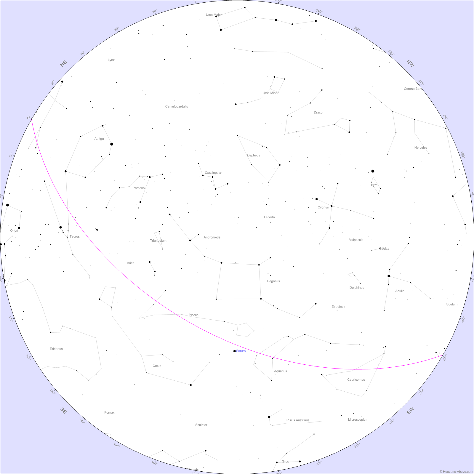Nearby, the “W” of Cassiopeia is high and bright. From there, you can hop down to the Double Cluster in Perseus, a fan favorite for binocular stargazers.