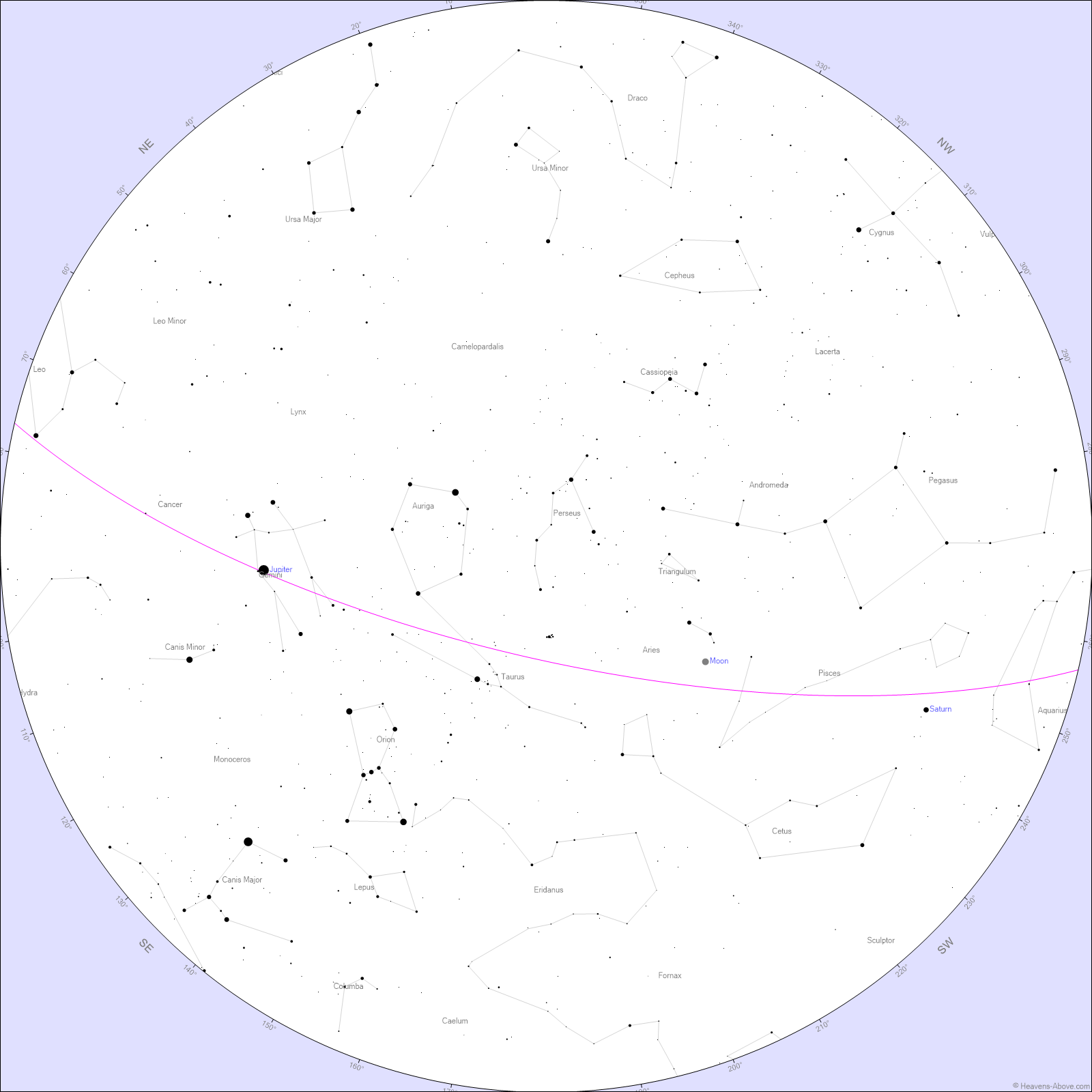 Jupiter will be prominent throughout this week, still glowing brightly after its recent opposition earlier in January and visible all night. It sits in Gemini, near the bright stars Castor and Pollux. Saturn will be an evening planet after sunset, fading toward late evening as the week progresses.