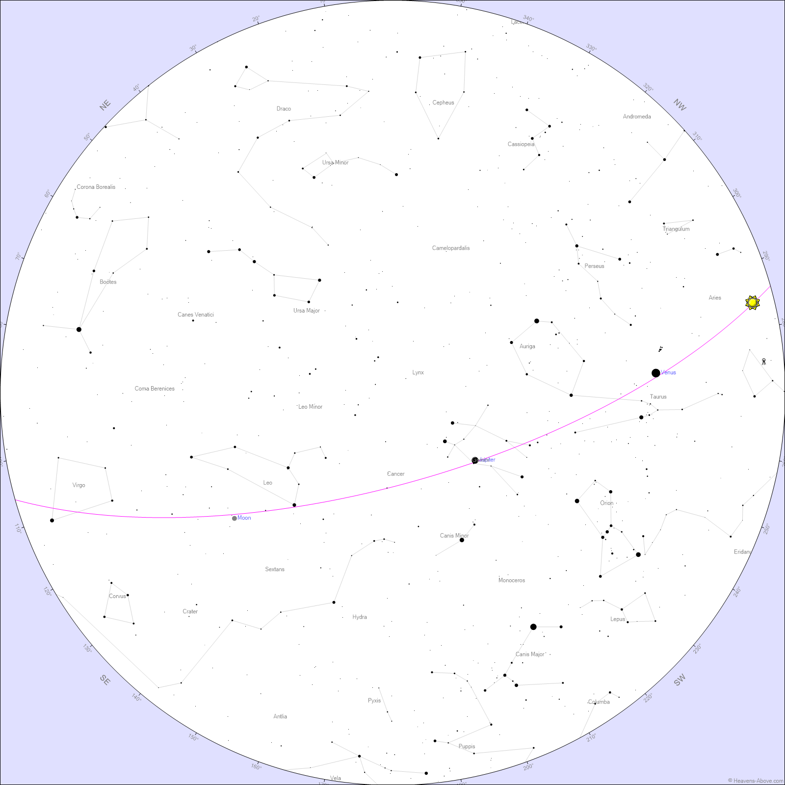 Higher up, Jupiter continues to dominate the evening sky, steady and bright, and still one of the most rewarding objects to observe through a telescope.